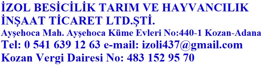 Firmamızın ismi: İzol Besicilik Tarım ve Hayvancılık İnşaat Ticaret Limited Şirketi
